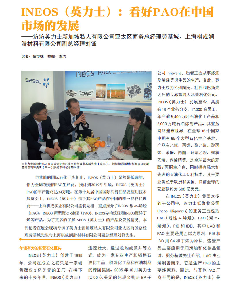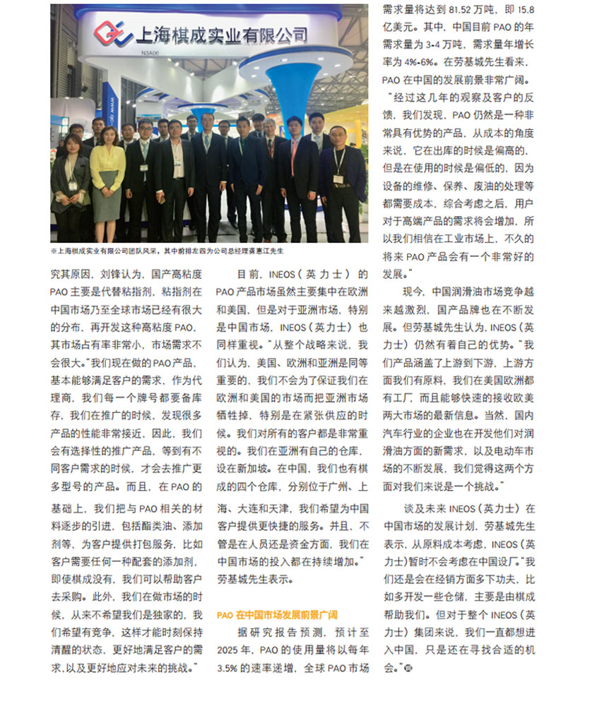 INEOS(英力士):看好PAO在中國(guó)市場(chǎng)的發(fā)展