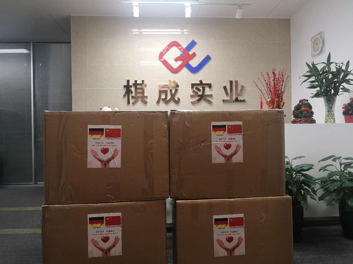 3月30日,南京棋成向德國科萊恩捐贈6000個KN95口罩;