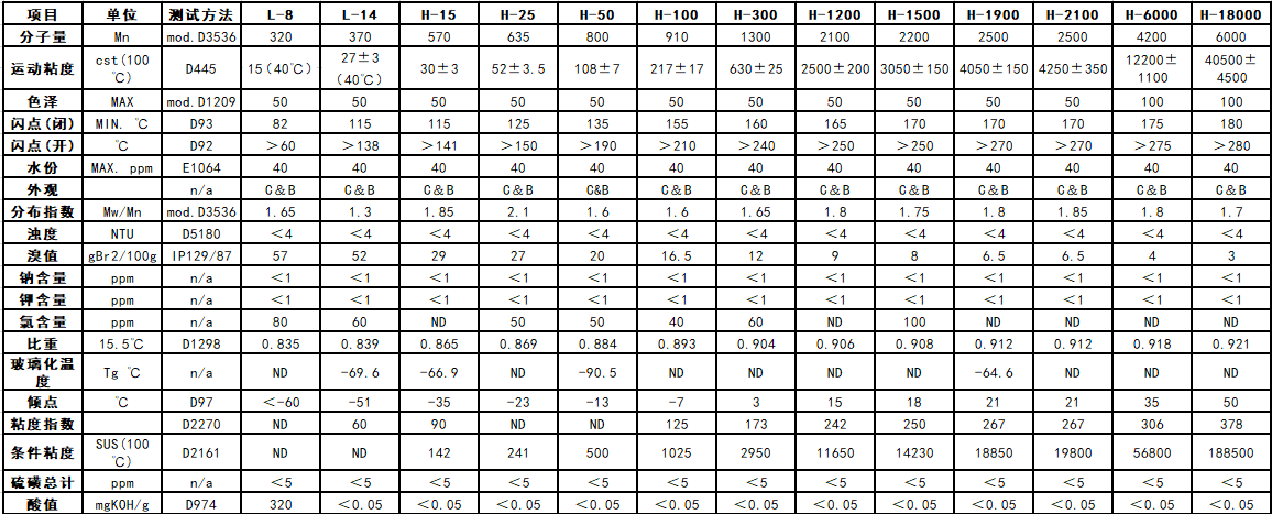 【性 質(zhì)】一種無色無味,無毒的粘稠物質(zhì),具有良好的耐熱,耐氧耐化學(xué)品,以及耐候,耐紫外線性能,此外還具有優(yōu)越的電絕緣性能。分子量最低有320最高有6000,有十幾個牌號,常用的有H100,H300,H2100,H6000及H18000等。