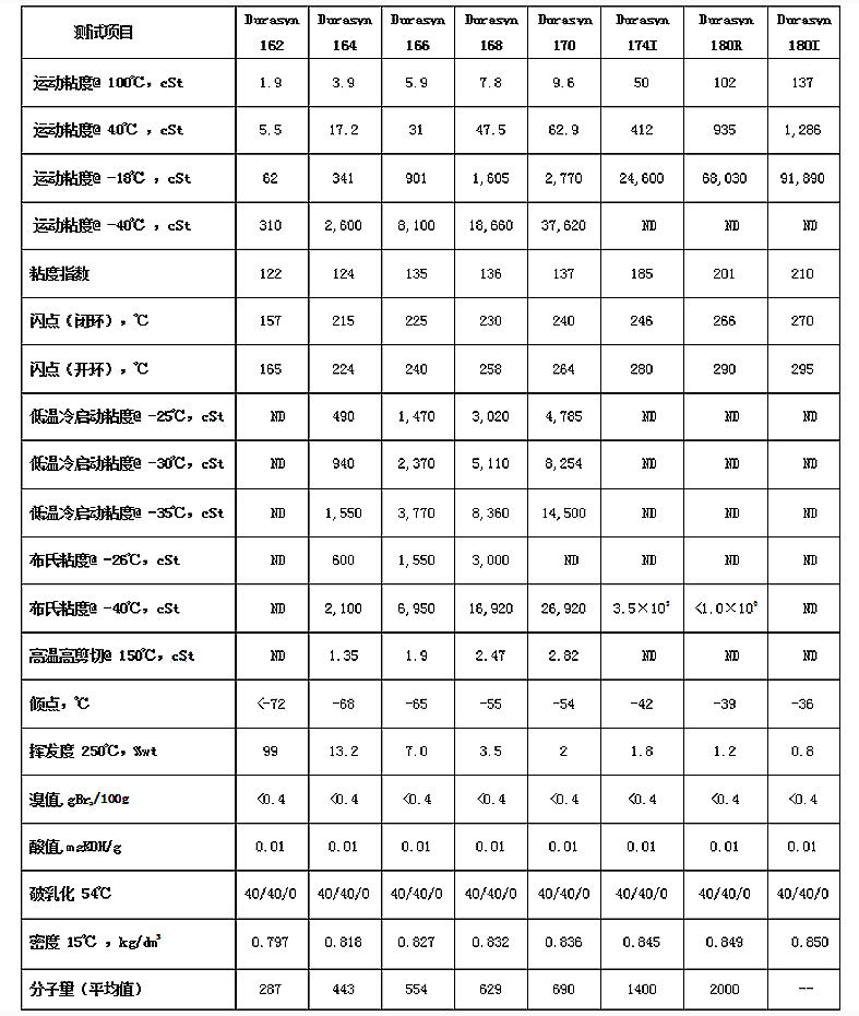 烯烴為原料的合成基礎(chǔ)油,無色無味透明液體,具有優(yōu)良的高低溫性能、極佳的熱氧化安定性,并經(jīng)美國(guó)FDA認(rèn)證。