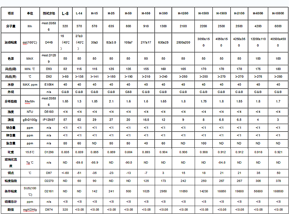 INEOS生產(chǎn)的PIB,牌號多、氯含量低、高溫下無殘?zhí)俊⒎植贾笖?shù)小等優(yōu)點(diǎn),使其廣泛應(yīng)用于工業(yè)潤滑油及車用油領(lǐng)域。優(yōu)良的氧化安定性和增粘效果,可改善潤滑油的潤滑性能。