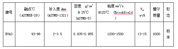 中英文名稱:醋酸乙烯與乙烯共聚蠟, EVA3 Wax