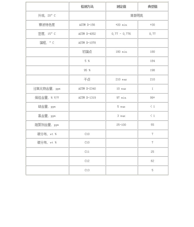 英文名稱: Propylene Tetramer (PT); dodecene ;dodecylene