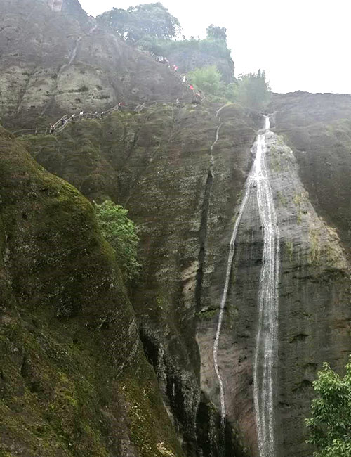 天游峰為武夷山第一勝地、第一險峰,我們的第一站就是登天游峰。同事們暫時放下繁忙的工作,置身在大自然中,仰觀青翠的山峰,令人心曠神怡,仿佛置身于仙境之中。天游峰山勢險峻,海拔高度408.8M,總計848級石階,登頂?shù)氖A皆沿山脊盤旋而上,越到山頂石階越陡,同事們以越戰(zhàn)越勇之勢,全部登上山頂。