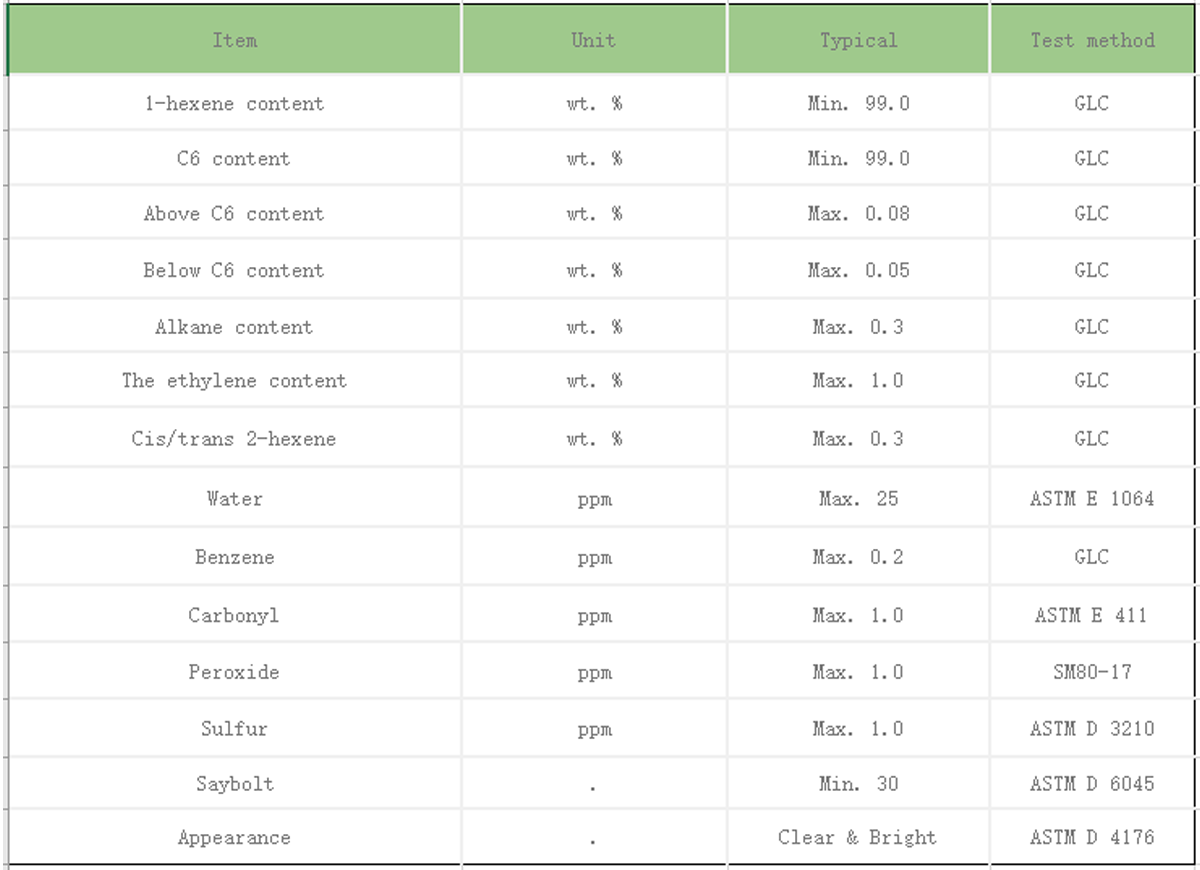 1,PE,PP:? As the copolymerized monomer of LLDPE, HDPE, PP and other plastics, this product can obtain a better performance than using 1-butene as the copolymerized monomer.