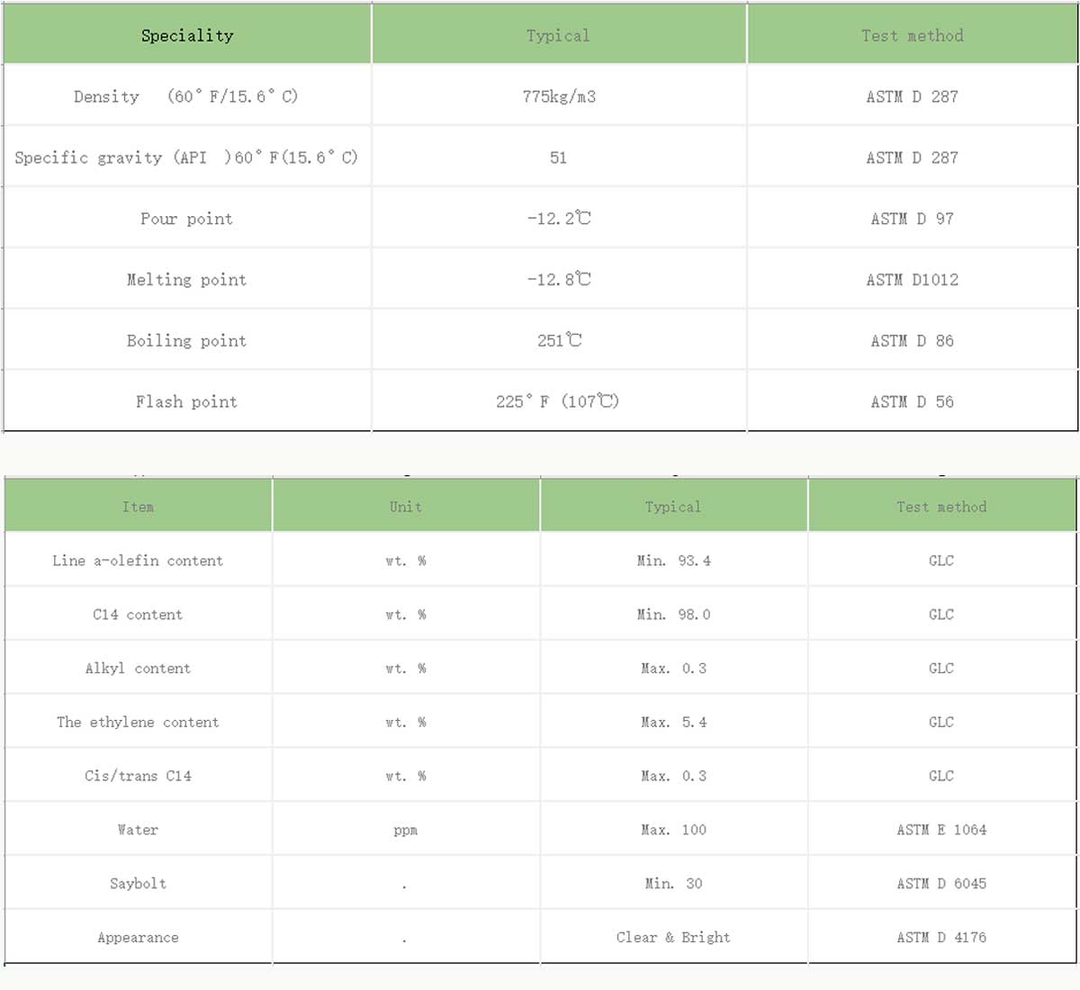 3, This product is used to produce C14 alcohol ,LAB , a-olefin sulfonate ,ADAM etc…
