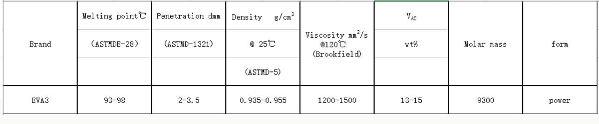 Product characteristic: Luwax EVA3 is ethylene—vinyl acetate copolymer wax, proportion of vinyl acetate is 15%.It contains polar functional groups that could improve compatibility with inorganics and polar resin ; Also it’s an excellent dispersant in the masterbatach industry, especially good dispersion of TiO2 and carbon black; Further more could improve brightness of black masterbatch.